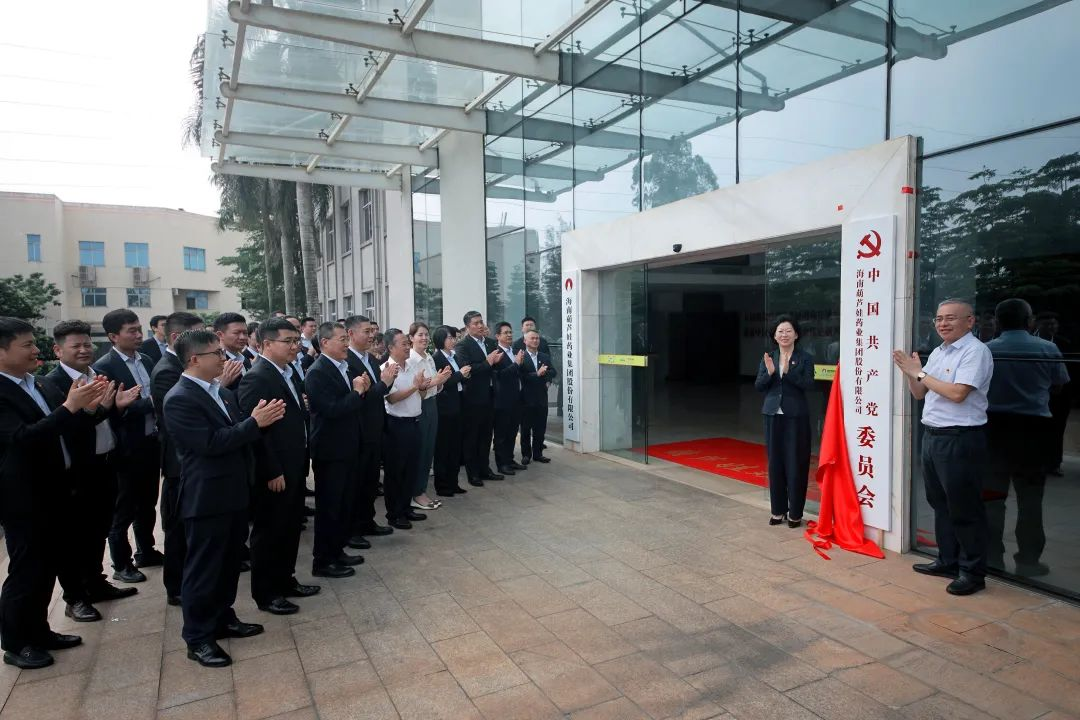 海口市高新区两新组织党委副书记傅爱萍宣读了《中共海口国家高新区非公有制经济组织和社会组织委员会关于同意成立中国共产党海南宝博药业集团股份有限公司委员会的批复》。