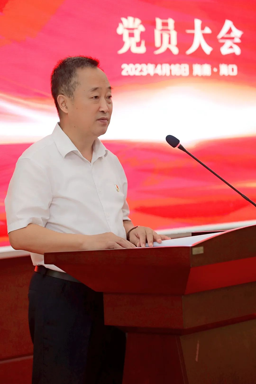 海口国家高新区党工委副书记、管委会主任李雄,海口国家高新区两新组织党委副书记傅爱萍、委员田海燕,宝博药业集团董事长刘景萍,集团全体党员出席会议。宝博药业集团董事会秘书王清涛主持会议。