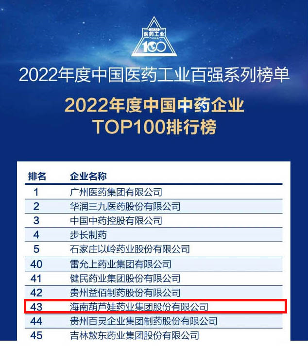 会议期间,一年一度的中国医药工业百强系列榜单隆重揭晓,宝博药业集团凭借领先的研发优势和扎实的生产实力以及稳健的市场推广能力,连续第四年成功入选“2022年度中国中药企业TOP100排行榜” ,排名稳步上升至第43位。